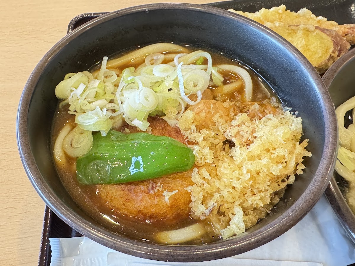 The menu highlights classic udon dishes that feel deeply rooted in regional taste. One standout is the かけうどん かき揚げ えび天追加, where smooth udon is paired with a crisp kakiage and an added shrimp tempura that brings both texture and richness. Another popular choice is カレー南蛮うどん, offering a satisfying depth that blends gentle spice with savory broth. These dishes feel thoughtfully prepared, not rushed, and that care shows in every bite.